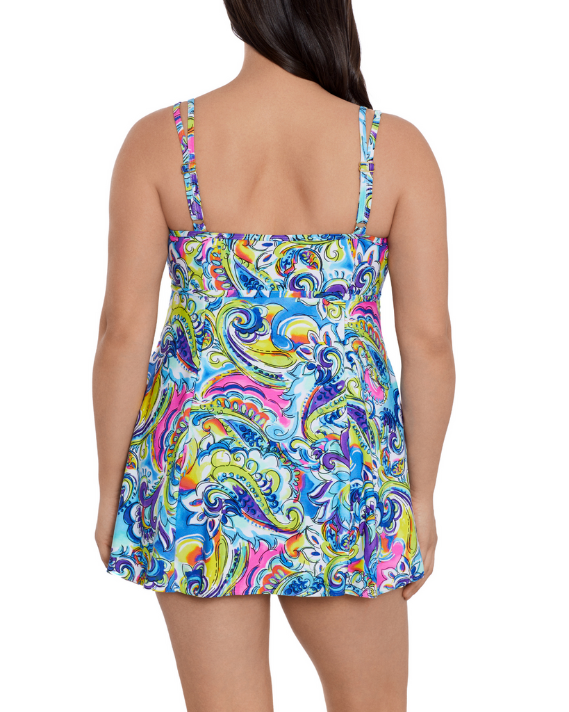 Longitude Paisley Seas Empire Princess Seam Swim Dress