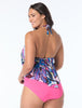 Tiers of fluttery ruffles add dimension to this colorful tankini top.