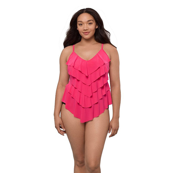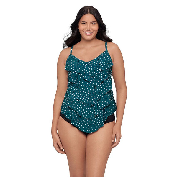 Trimshaper Rachel ruffle Full Figure tankini blue grotto